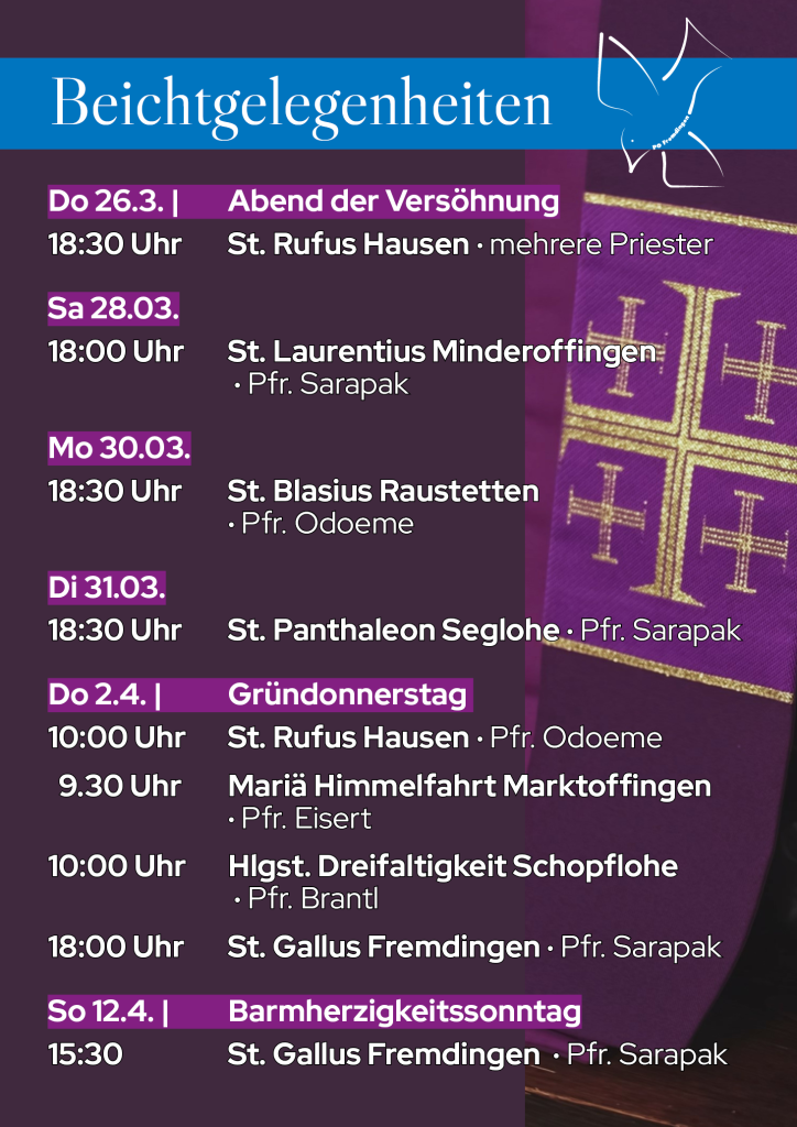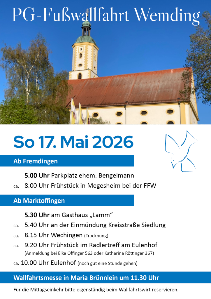 Die Anmeldung für die Pilgerreise 2026 nach Italien ist ab 31. März persönlich oder telefonisch zu den Öffnungszeiten des Pfarrbüros möglich (in den Ferien Di + Do 9-11 Uhr).